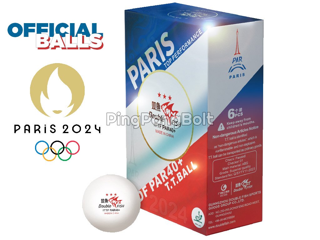 Double Fish PAR40+ limitált kiadású Párizs 2024 PAR40+3 csillagos labdát az ITTF jóváhagyta, és már hivatalosan is forgalomban van A 2024-es párizsi olimpiai játékok és a 2024-es párizsi paralimpiai játékok kizárólagos asztaliteniszlabda-szállítójaként a Double fish biztosítja a két sportesemény hivatalos labdáit, garantálva a labdák minőségét és a sportolók játékélményét.